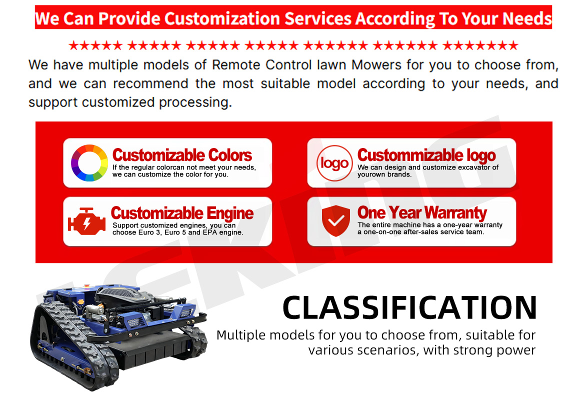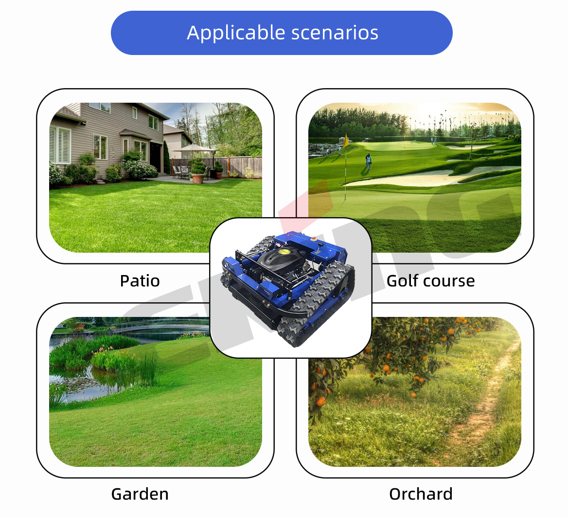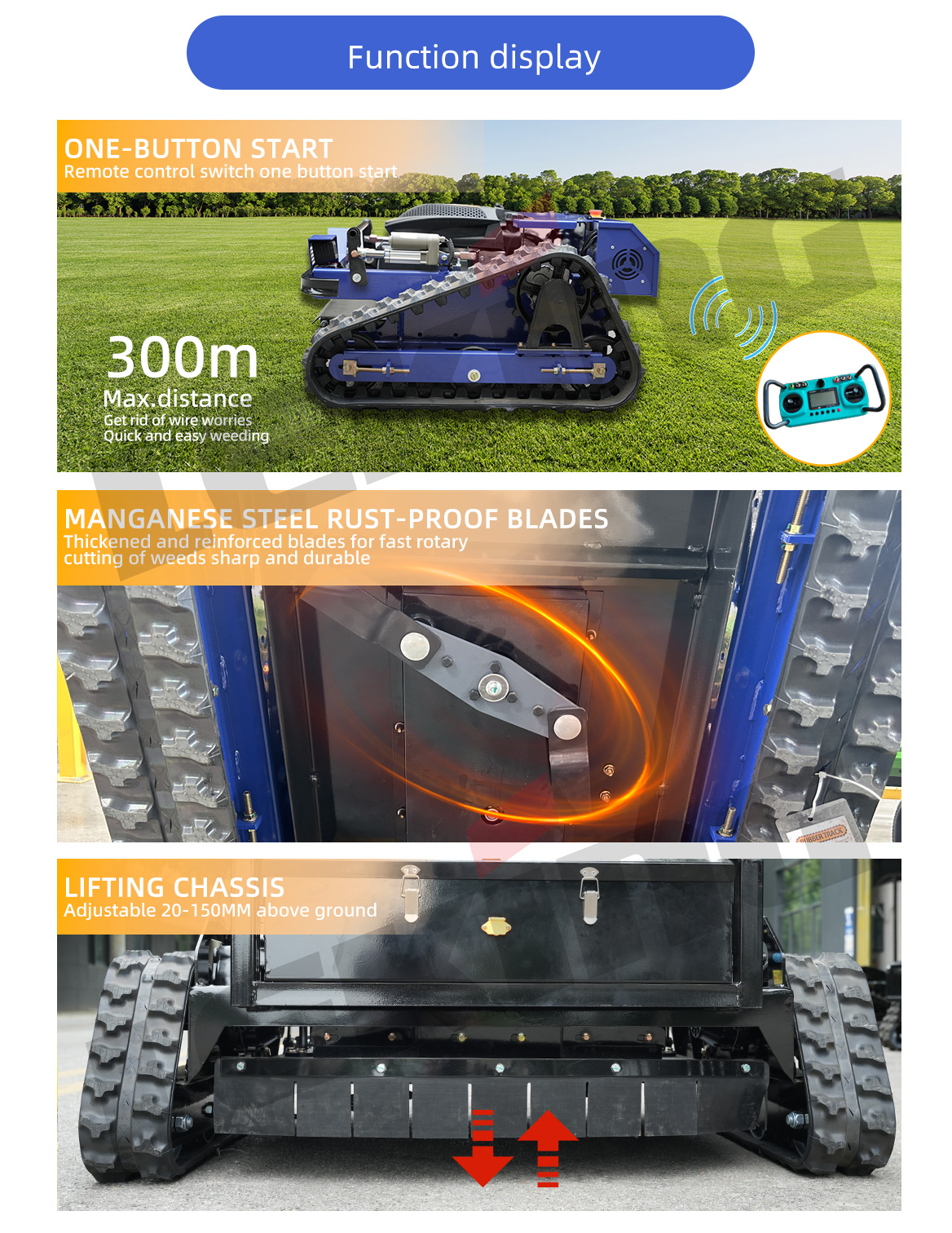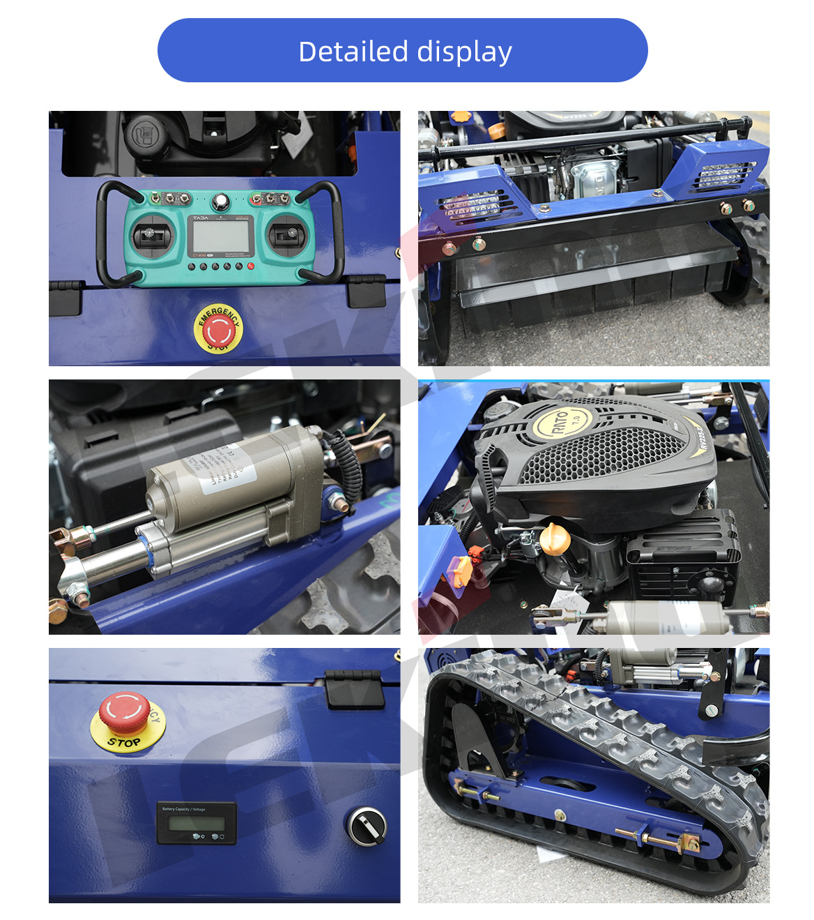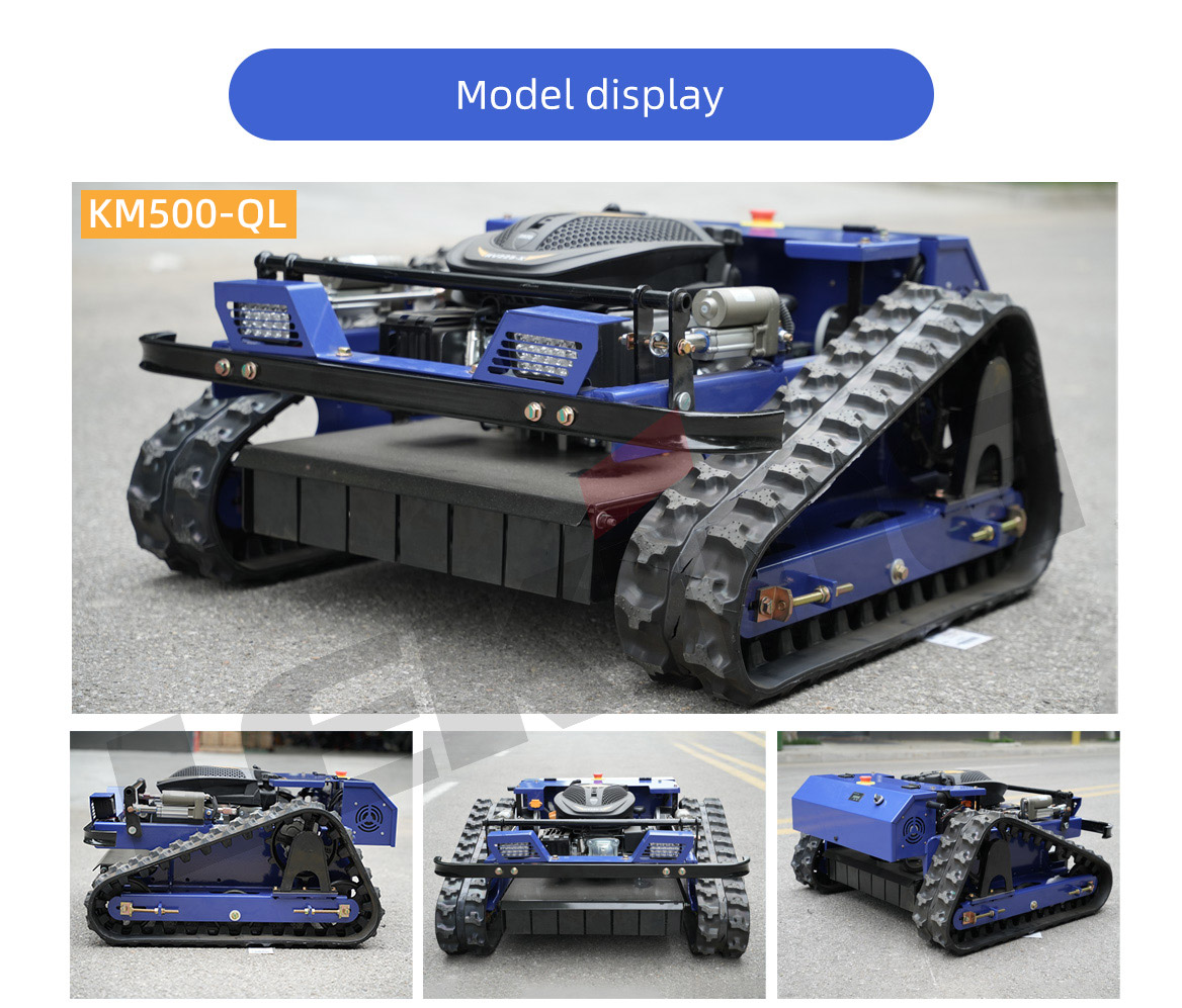 The remote control lawn mower is a remote control intelligent agricultural and forestry equipment, suitable for forestry, grassland, roads, dams, agriculture and forestry, orchards, vegetables, greenhouses, farms, ecological parks and other places. It has good weeding and climbing effects. It can be used in various terrains. It can trim various weeds and reeds. Scope of use: orchards, garden lawns, wasteland weeds.