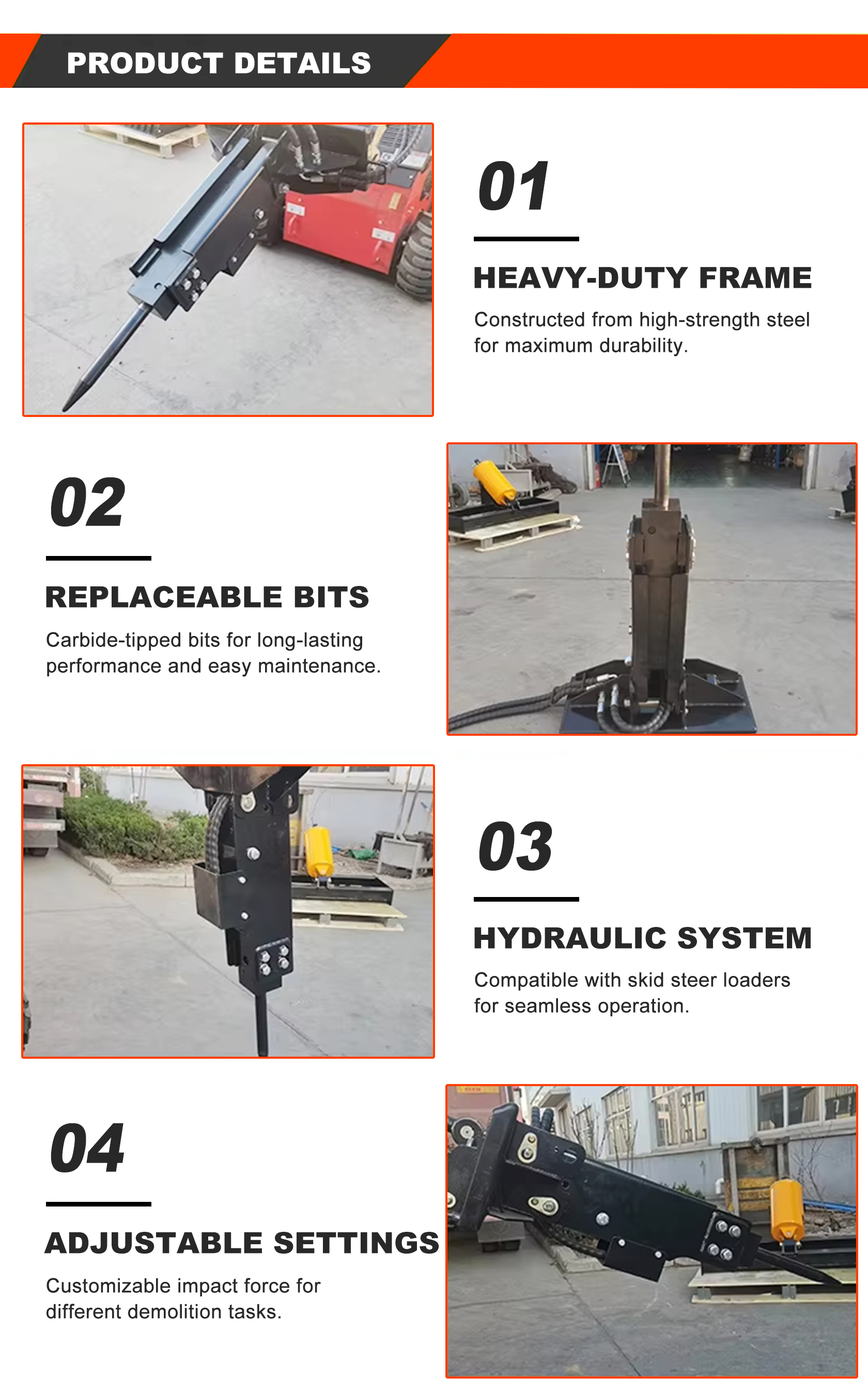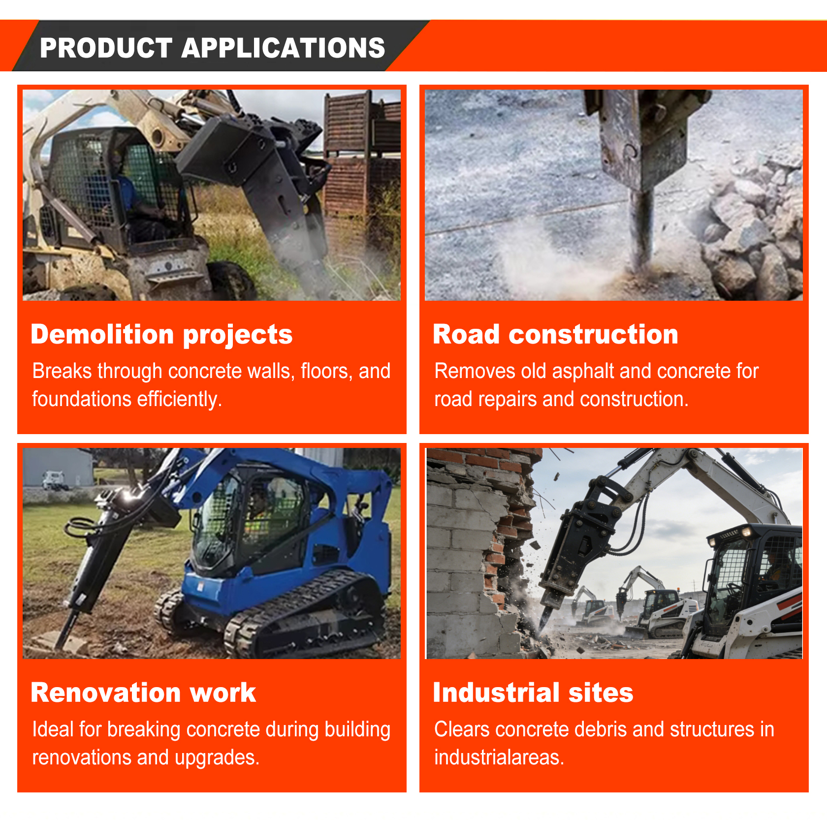 Hydraulic Breaker A hydraulic breaker is a device used for breaking rocks. Powered by pressurized hydraulic fluid supplied by the pump station of an excavator or loader, it more effectively removes loose rocks and mud from rock crevices during the excavation of building foundations. The principle for selecting a hydraulic breaker is to choose the most suitable one based on the excavator model and the operating environment. Length:1000mm Width:650mm Height:265mm Drill rod diameter:35mm Pressure:8Mpa-11Mpa Request Quote *Name *Country / Region *Email *Phone number / Whatsapp number Favorite product Crawler Excavator Mower Electric Excavator Excavator Accessories Loader Forklift Crane Aerial work machinery Mini Dumper Customized Others Loader Accessories How would you like us to contact you? Email Phone Whatsapp Content Verification code Submissions Loading... A key to share Selling point Configuration Video Introduction Relevant Online message Request Quote *Name *Country / Region *Email *Phone number / Whatsapp number Favorite product Crawler Excavator Mower Electric Excavator Excavator Accessories Loader Forklift Crane Aerial work machinery Mini Dumper Customized Others Loader Accessories How would you like us to contact you? Email Phone Whatsapp Content Verification code Submissions Loading... Request price *Name *Country / Region *Email *Phone number / Whatsapp number Favorite product Crawler Excavator Mower Electric Excavator Excavator Accessories Loader Forklift Crane Aerial work machinery Mini Dumper Customized Others Loader Accessories How would you like us to contact you? Email Phone Whatsapp Content Verification code Submissions Loading... Back to previous We Accept: Hydraulic Breaker A hydraulic breaker is a device used for breaking rocks. Powered by pressurized hydraulic fluid supplied by the pump station of an excavator or loader, it more effectively removes loose rocks and mud from rock crevices during the excavation of building foundations. The principle for selecting a hydraulic breaker is to choose the most suitable one based on the excavator model and the operating environment. Length:1000mm Width:650mm Height:265mm Drill rod diameter:35mm Pressure:8Mpa-11Mpa DESCRIPTION SPECIFICATION Hydraulic Breaker Length1000mmWidth650mmHeight265mmWeight69kgDrill rod diameter35mmImpact force80-100J Hydraulic Breaker Configuration Length 1000mm Width 650mm Height 265mm Weight 69kg Drill rod diameter 35mm Impact force 80-100J Video Introduction Hydraulic Breaker Relevant Soil conditioner Read more Mower Read more Trenching machine Read more Auger Read more Online message *Name *Email *Phone / Whatsapp How would you like us to contact you? Email Phone Whatsapp Content Verification code Submissions Loading...