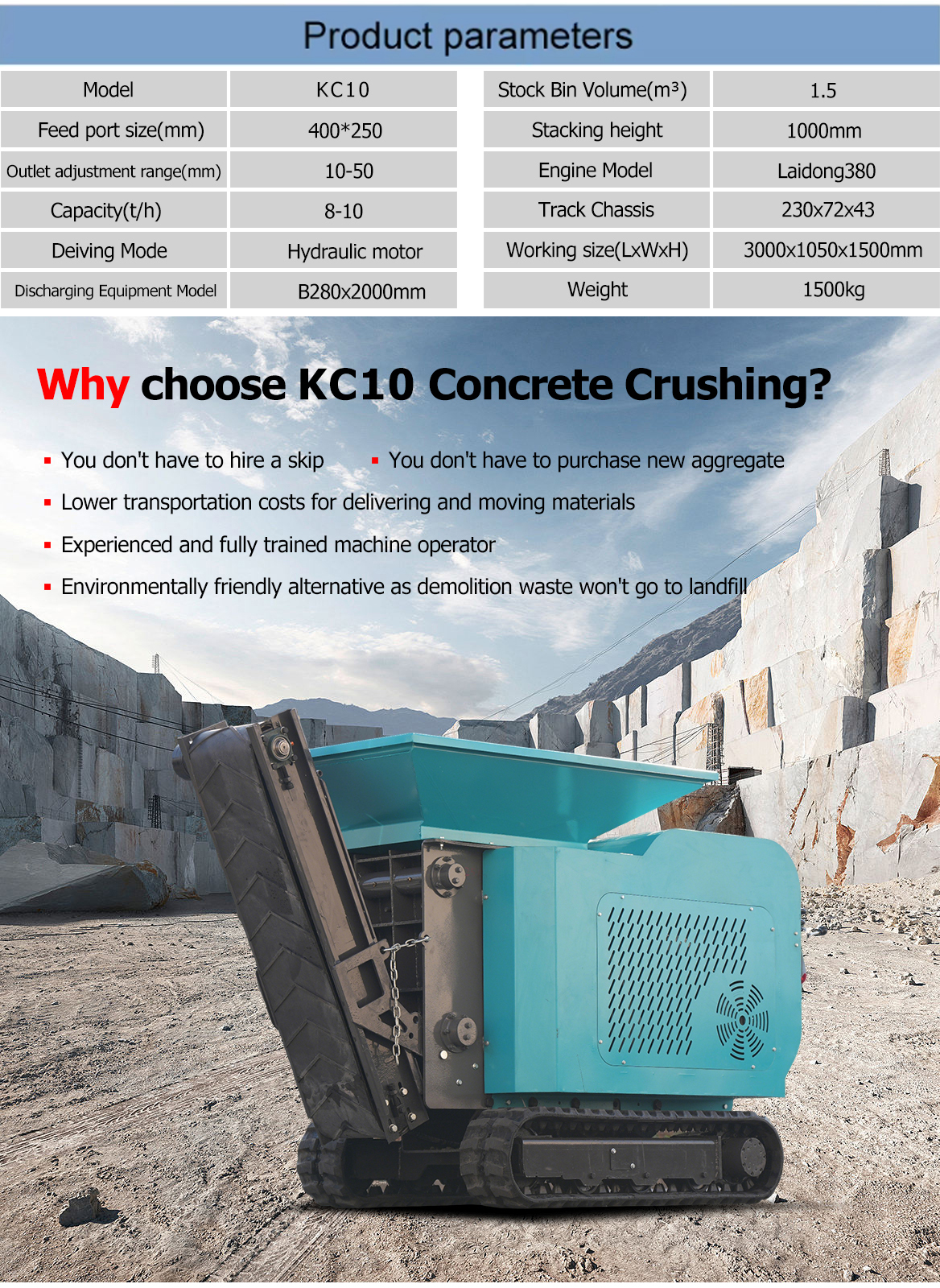 The KC10 jaw crusher is a small to medium-sized jaw crusher, mainly used for crushing various ores and bulk materials. Jaw crushers are widely used in mining, metallurgy, building materials, highways, railways, water conservancy, and chemical industries.