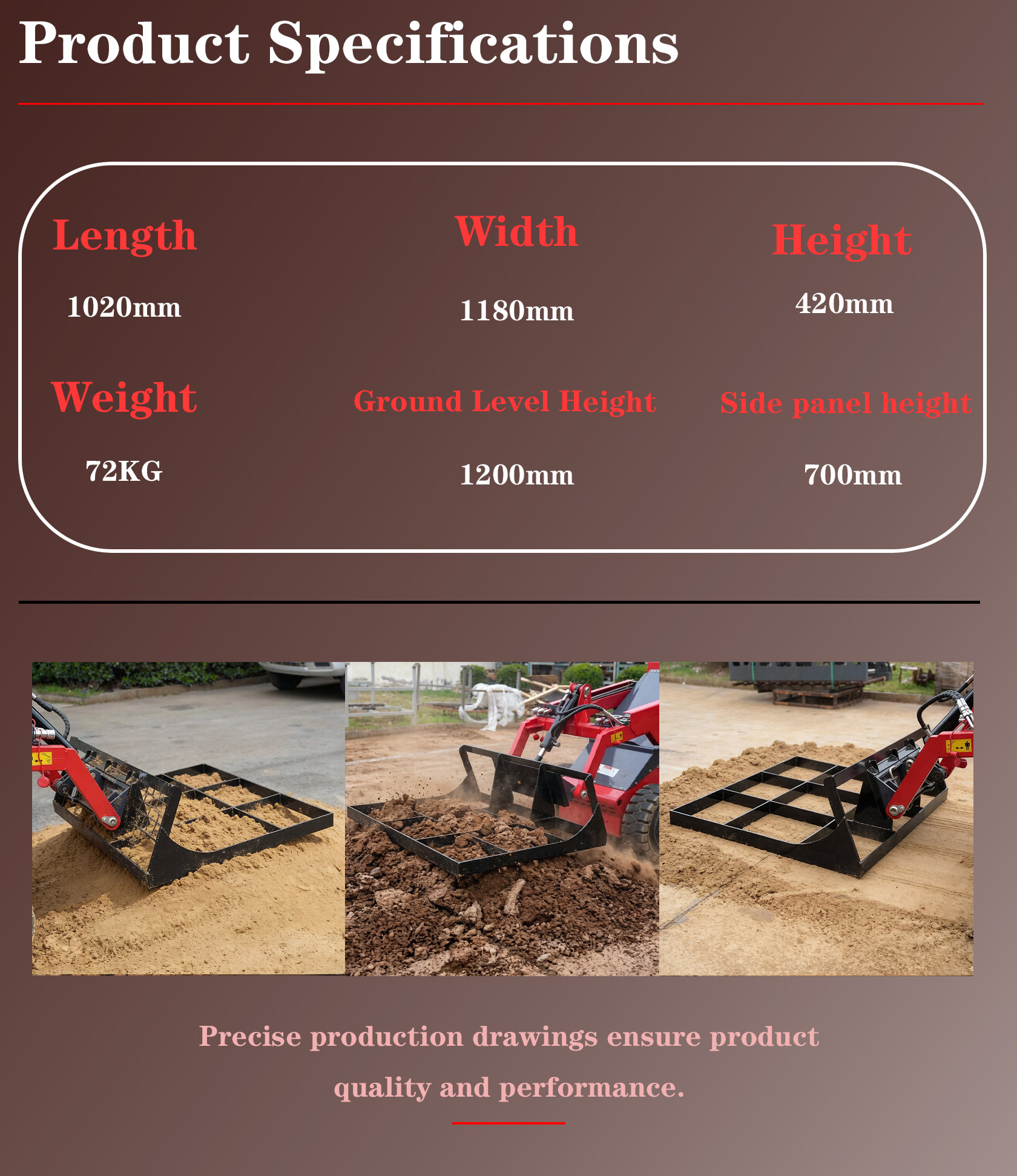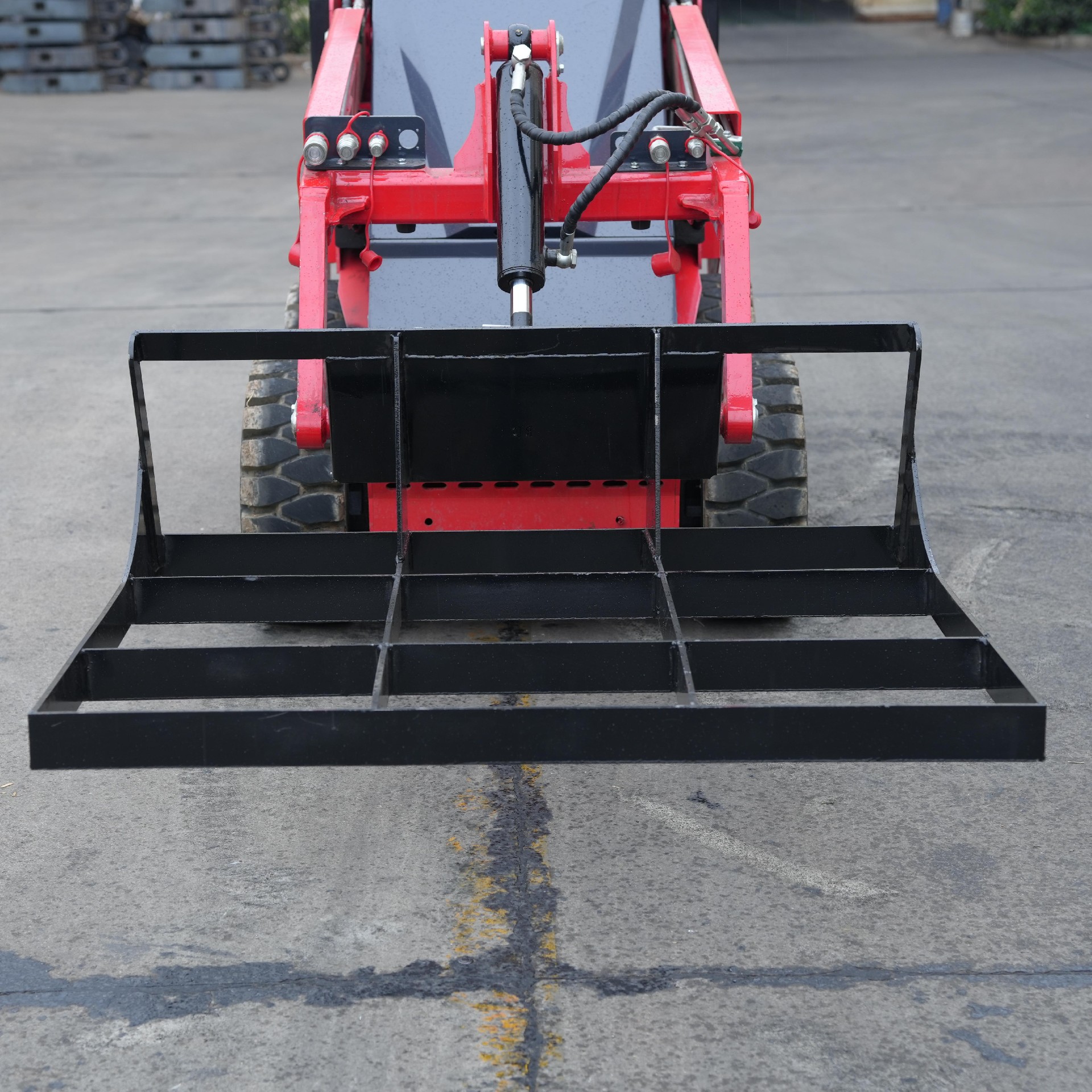 Designed for skid steer loaders, this grader attachment delivers professional-grade grading, leveling, and site preparation capabilities. Engineered with a heavy-duty steel frame and adjustable blade, it allows operators to achieve precise surface finishes for a wide range of applications, from road maintenance to construction site preparation. The universal quick-attach mounting system enables fast attachment changes, maximizing machine utilization and job site efficiency. Whether you are grading gravel roads, leveling building pads, or maintaining parking lots, this attachment transforms your skid steer into a versatile grading machine.