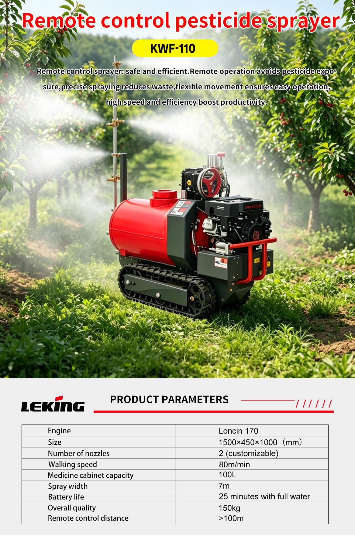 Engine:Loncin 170 Size:1500x450x1000 (mm) Walking speed:80m/min Medicine cabinet capacity:100L Overall quality:150kg